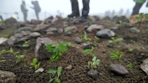 会のメンバーやボランティアの方々で、苗木や石を一つずつ持って山頂まで運ぶそうです。